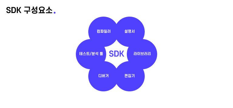SDK는 Software Development Kit의 약자로 DIY(Do-It-yourself) 키트와 같이 소프트웨어 도구와 프로그램이 세트로 제공되는 개발도구 키트입니다.