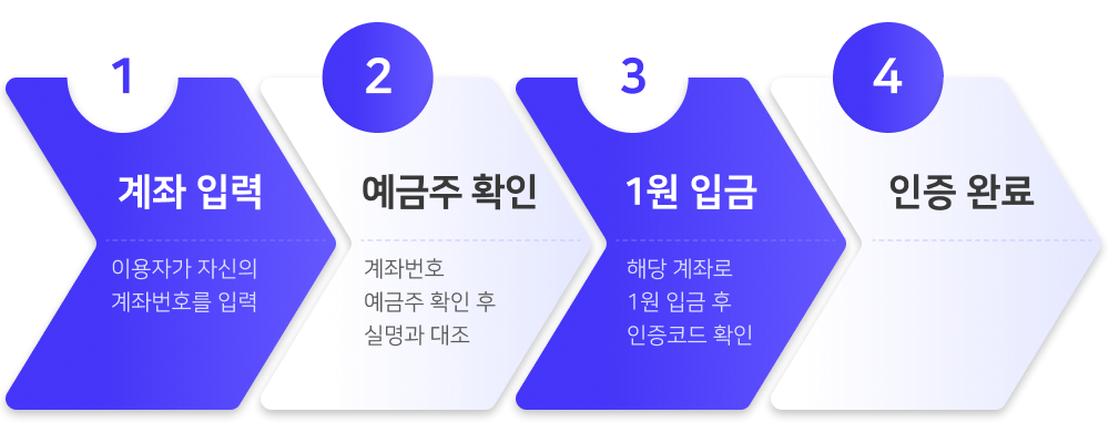 2. 예금주 확인 : 이용자의 실명과 계좌번호의 예금주가 일치하는 지 확인합니다.